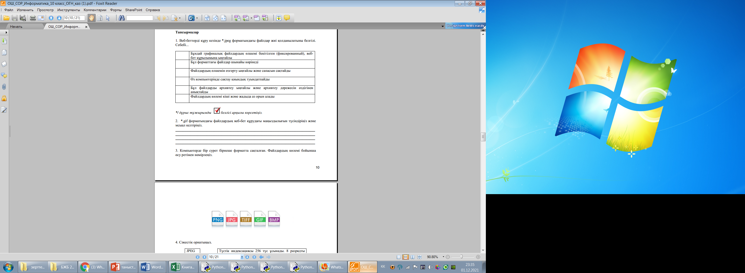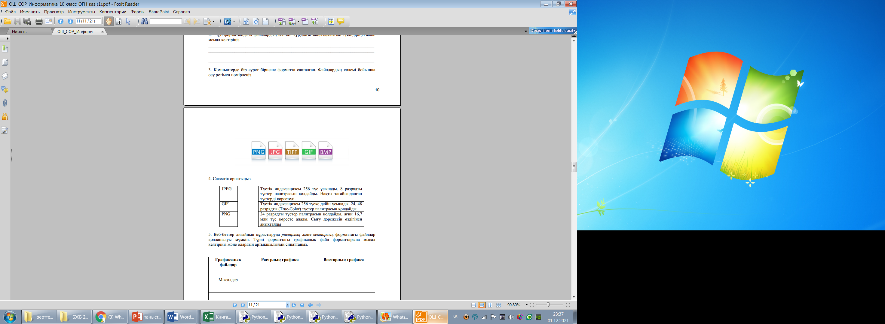 Оқу мақсаты 10.2.1.5 Сурет файл форматтары арасындағы айырмашылықты түсіндіру