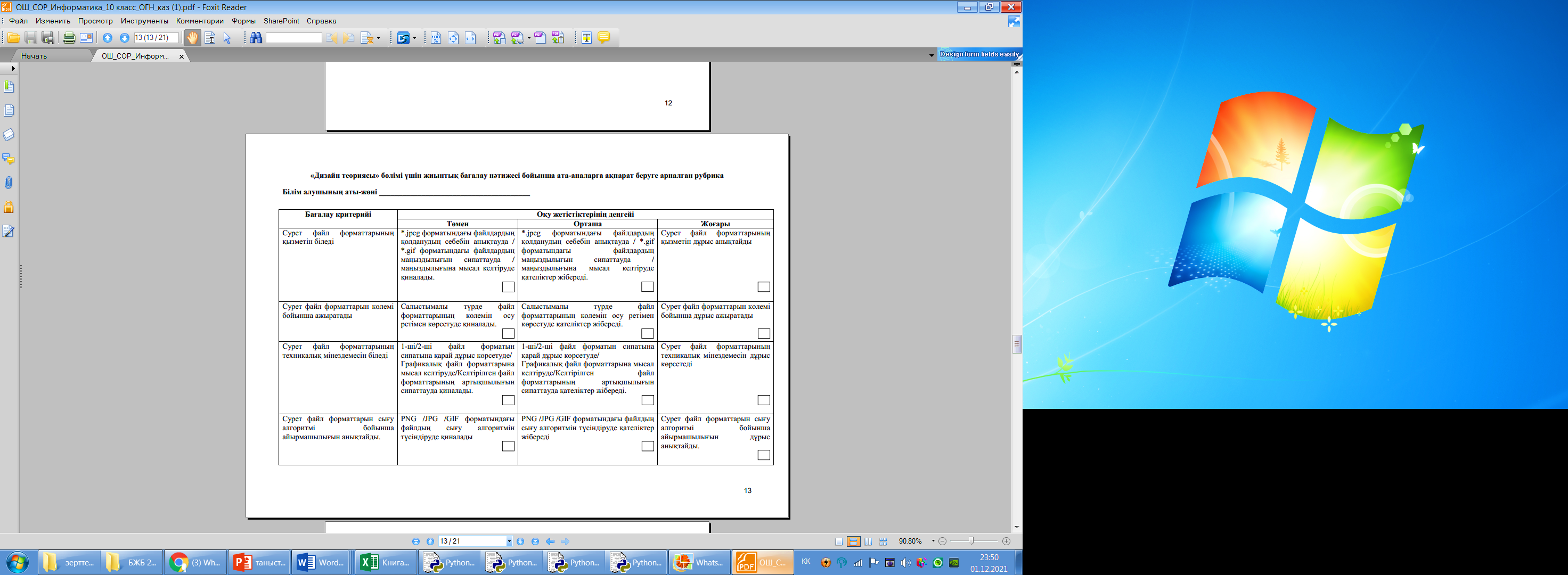 Оқу мақсаты 10.2.1.5 Сурет файл форматтары арасындағы айырмашылықты түсіндіру