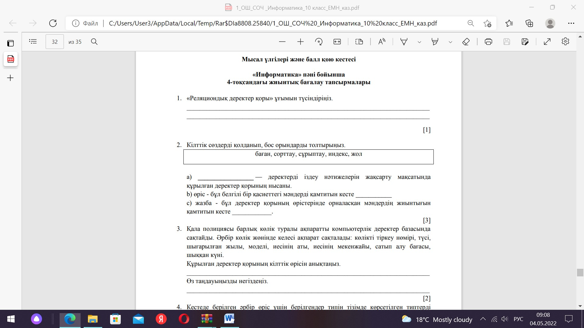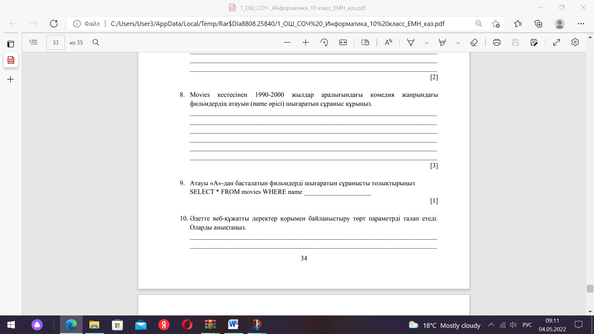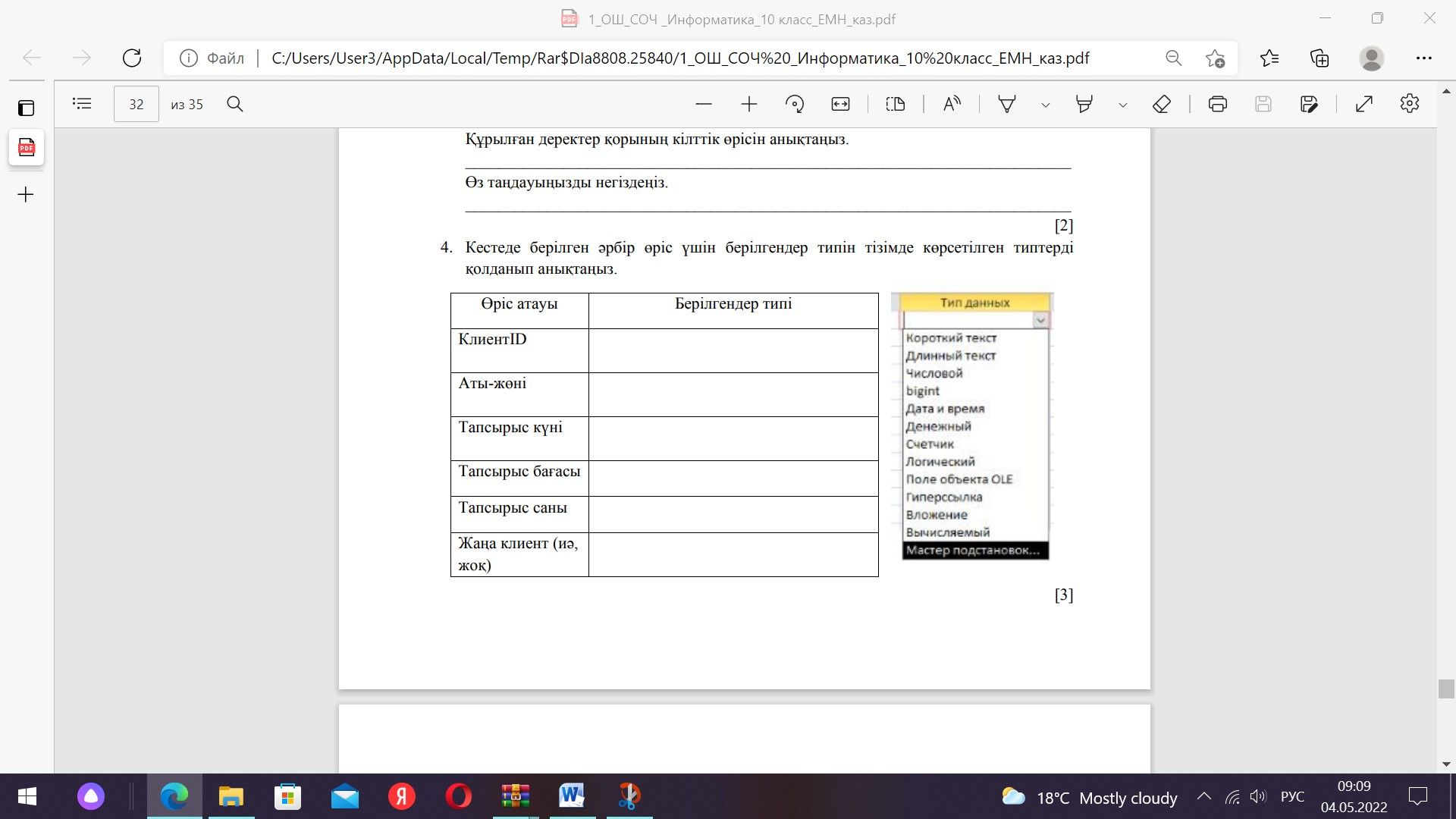 10 сынып ТЖБ 4-тоқсан. Информатика