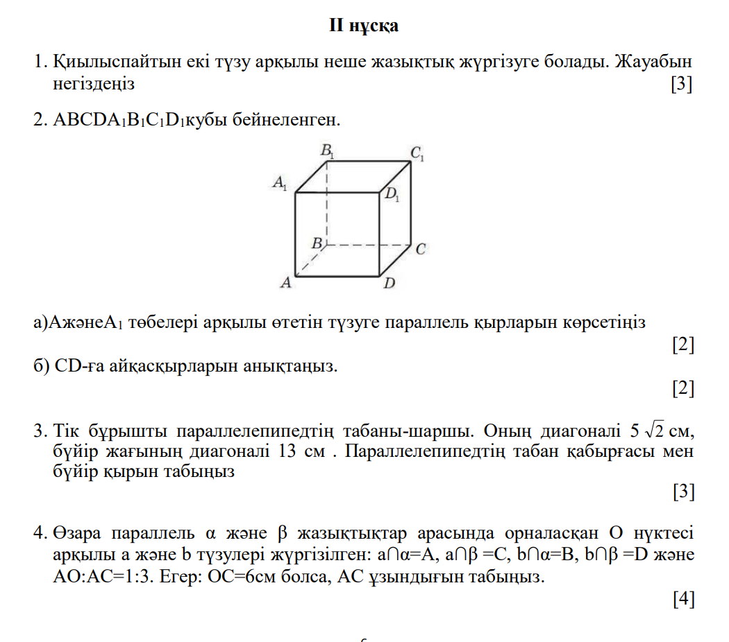 10сынып геометрия БЖБ 1токсан