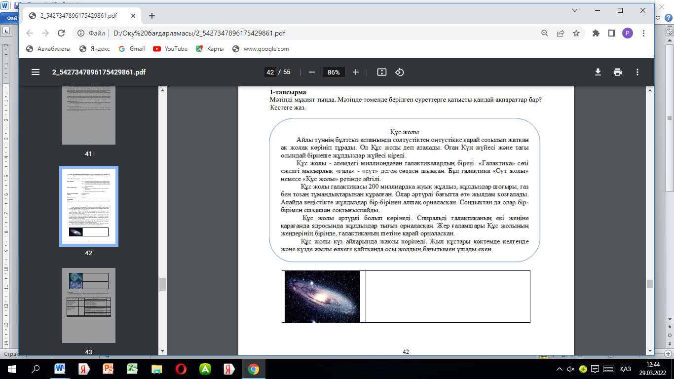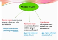 4.2.5.1* дереккөздерден (мәтін, сөздік, сызба, кесте, диаграмма) қажетті ақпараттарды табу, кездескен жаңа сөздердің мағынасын мәнмәтін бойынша анықтап, ақпаратты қорытындылау, бағалау 4.3.6.1 каллиграфиялықнормалардысақтаужәнежазутехникасынжетілдіру |