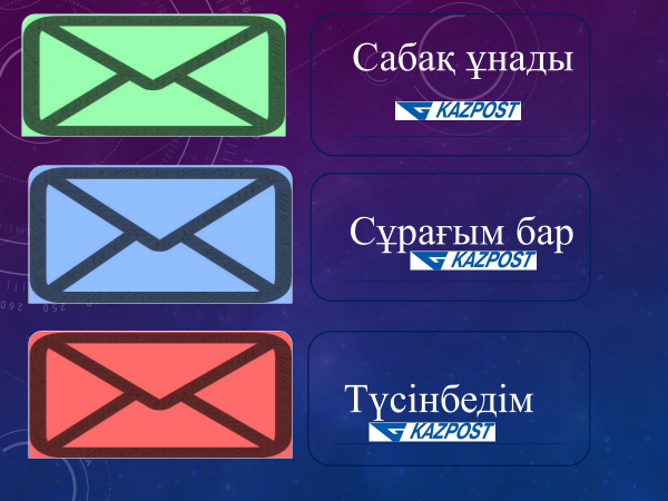 Мадақтаулар арқылы бағалап отыру ҚБ: «Қалам»әдісі Дескриптор: Өткен тақырып бойынша біледі-2Б ҚБ: «Қалам»әдісі Дескриптор: Әдебиеттік оқу» кітабынан сөйлемде одағай, еліктеуіш сөздерді ажыратады-2Б ҚБ: «Қалам»әдісі Дескриптор: Оқшау сөздерге жататын қаратпа, қыстырма сөздердің біріне осындай бет құрастырады-2Б ҚБ: «Қалам»әдісі Дескриптор: Қаратпа және қыстырма сөздердің мағыналық ерекшеліктерін зерттеп,мысалдар келтіреді-2Б ҚБ: «Қалам»әдісі Дескриптор: Дайындаған материалдарды сыныптастарыңның алдында қорғайды-2Б Жарайсыңдар «Хат» әдісі |