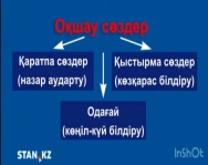 Оқшау сөздерге жататын қаратпа, қыстырма сөздердің біріне осындай бет құрастырып көр. Ол үшін қаратпа және қыстырма сөздердің мағыналық ерекшеліктерін зертте. Мысалдар келтір Қаратпа сөз – сөйлемде айтылған ойдың кімге арналғанын білдіру не оған басқаның назарын аудару мақсатынада жұмсалатын сөз немесе сөз тіркесі Қаратпа сөз болатындар: жалқы есімдер, туыстық атаулар, эмоционалдық мәнді сөздер, көркем әдебиетте жан-жануалар, жер-су атаулары т.б Қаратпа сөз сөйлемнің басында келсе, одан кейін үтір, не леп белгісі , ортасында келсе, екі жағынан үтір белгісі , соңында келсе , оның алдынан үтір қойылады. Мысалы: Балам, жөніңді айтшы, бізді көрсең сәлем бер деп әкең айтып па еді, жоқ өздігінен істедің бе? – деді Қыстырма сөз – сөйлеушінің не жазушының айтылған ойға әртүрлі көзқарасын, сезімін білдіретін моральдық мәні бар сөздер Қыстырма сөз бір сөзден де, бірнеше сөзден де тұратыны белгілі.Кей реттерде сөйлем түріндегі қыстырма сөз кездеседі Қыстырма сөз айтылған ойына автордың сенімін, күдігін, жорамалын т.б. көзқарасын аңғартады Мысалы: «Кім біледі, Сен кәпір, Баяңдыдан сендің бе? Әлде ойланып, кім білер» Үй тапсырмасы Өткенді пысықтау