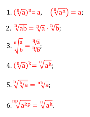 иррационал өрнектерді түрлендіру үшін n-ші дәрежелі түбір қасиеттерін қолданады |