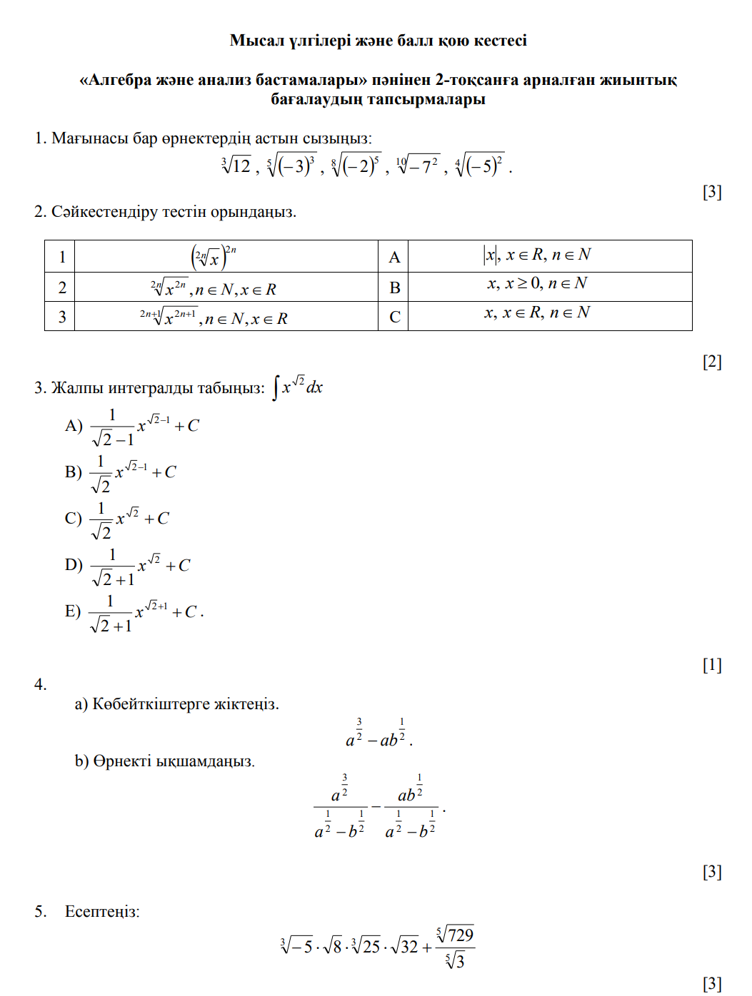 11 сынып алгебра ТЖБ 2токсан