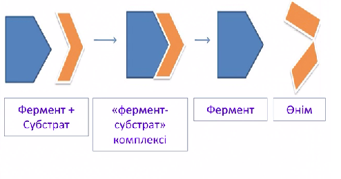 Кілт терминдер: субстрат, ферменттің белсенді орталығы, фермент, өнім, фермент – субстратты кешен