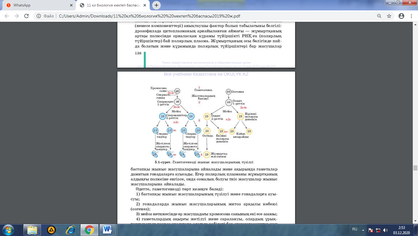 11.2.1.1 - адам гаметогенезінің сызбасын талдау |