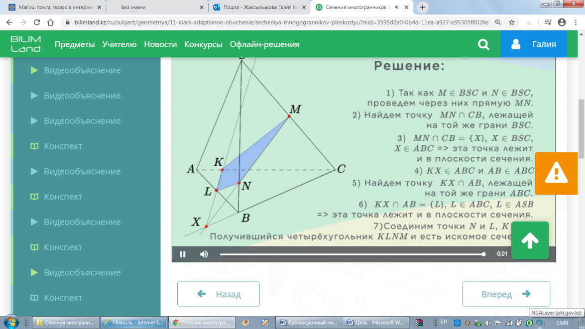 11 сынып геометрия 2 тоқсан 5 сабақ Көпжақтардың жазықтықпен қималары