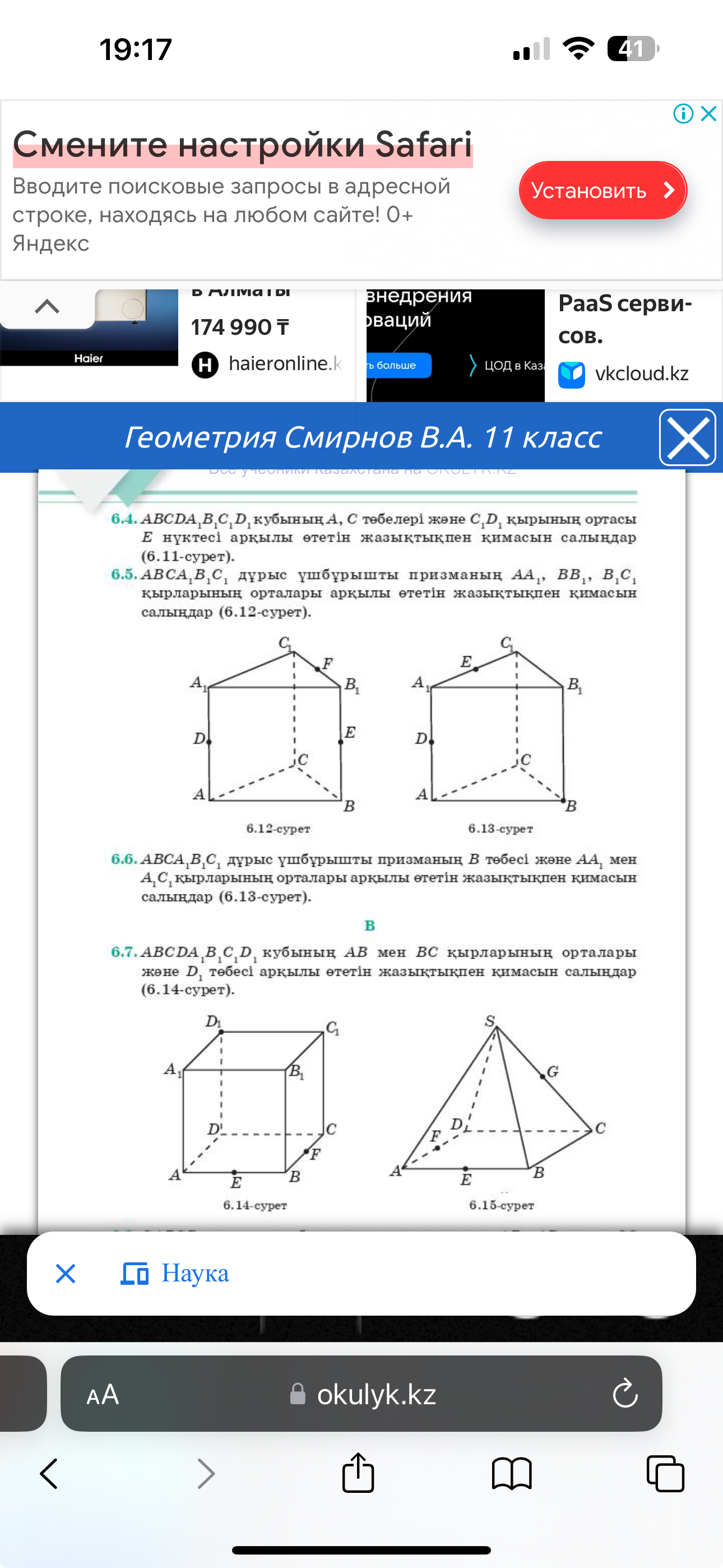 Смирнов В.А. және т.б. Геометрия: Жалпы білім беретін мектептің 11-сыныбына арналған оқулық Мектеп, 2020. – 192 бет |