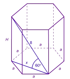Тікпризманың табанындақабырғаларының ұзындықтары 6 дмжәне 8 дм, ал олардың арасындағы бұрышы 30°болатын параллелограмм. Призманың толық бетінің ауданы 188 дм2. Призманың көлемін табыңдар.