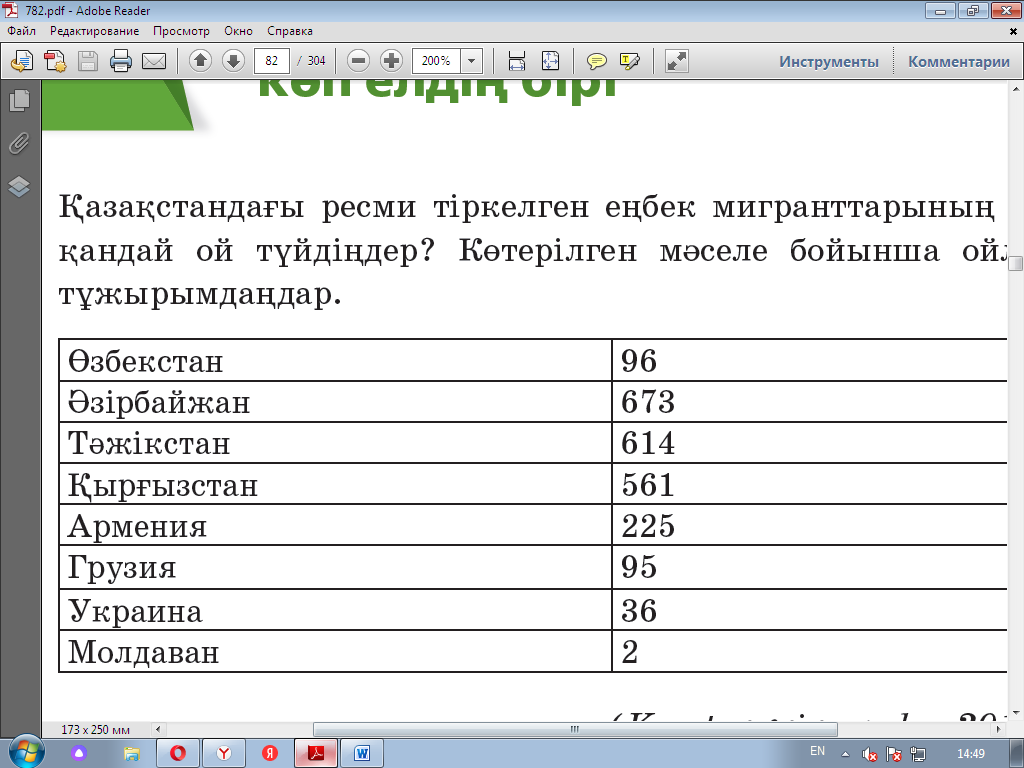 №8-тапсырма. Қазақстандағы ресми тірелген еңбнк мигранттарынның санынан қандай ой түйдіңдер? Көтерілген мәселе бойынша ойларыңды тұжырымдаңдар. |