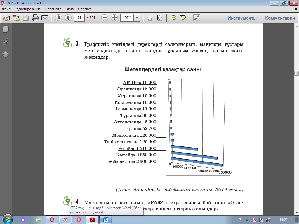 №3-тапсырма. Графиктік мәтіндегі деректерді салыстырып, маңызды тұстары мен үрдістерді талдап, өзіндік тұжырым жасап, шағын мәтін жазыңдар. |