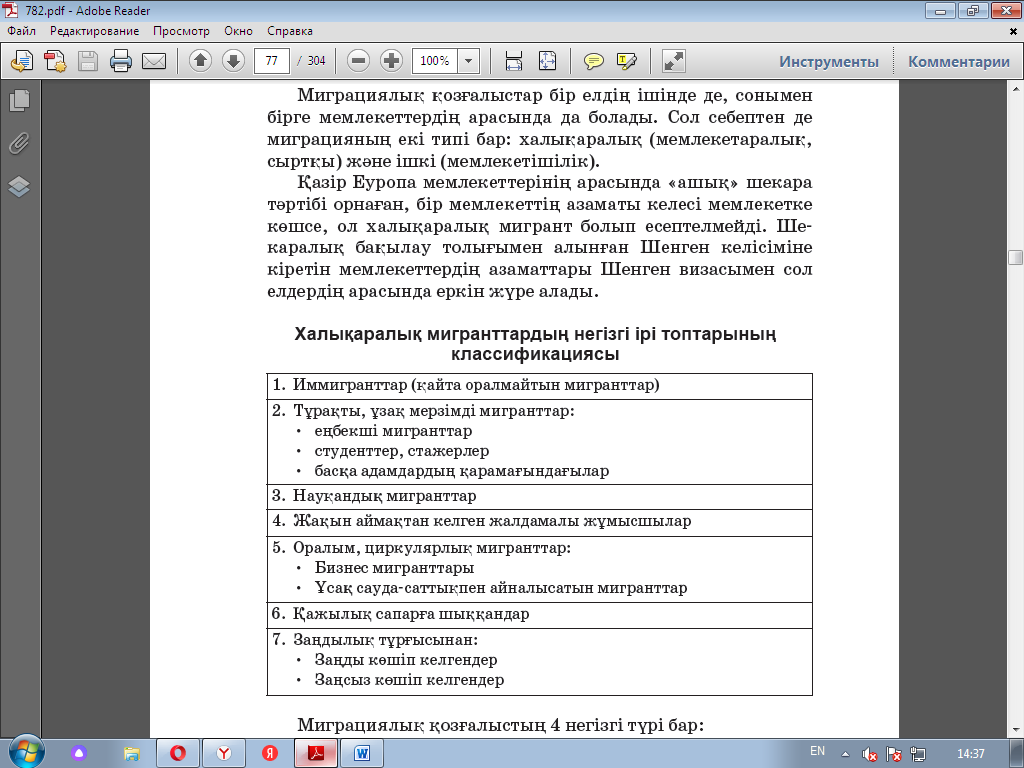 1. Мәтіннің миграцияға қатысы бар ма? 2.Әңгіме оқиғасы нені еске түсіреді? 3.Олардың себеп-салдары қандай? 4.Қандай сұрақтар туындады? |