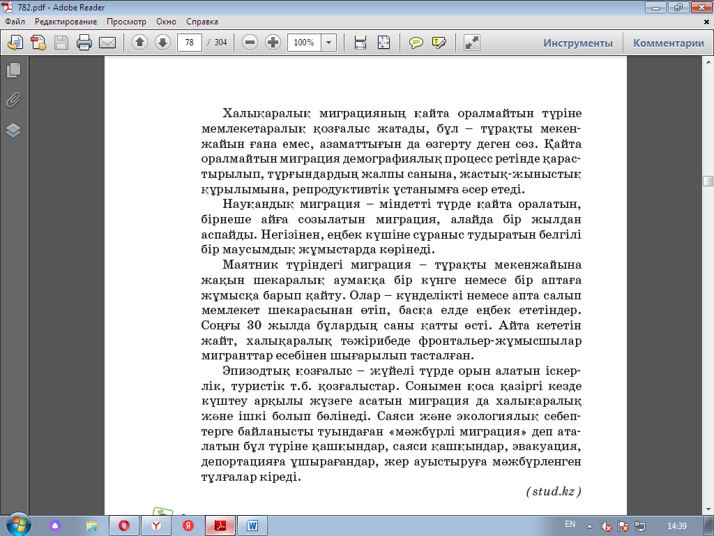 Қазіргі қоғам.Миграция. Зияткерлік миграция. Шешендік сөздер |
