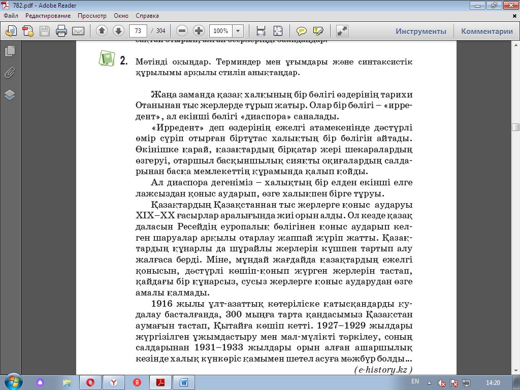 №2-тапсырма: Мәтінді оқыңдар. Терминдер мен ұғымдары және синтаксистік құрылымы арқылы стилін анықтаңдар. |