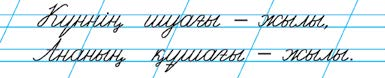 Дескриптор. Мәтінді мәнерлеп, тұтас оқиды Сұрақтарға жауап береді Дескриптор: Жолдың жоғары және төмен сызықтарын сақтайды Әріп элементтерін көркем жазу талаптарына сай жазады