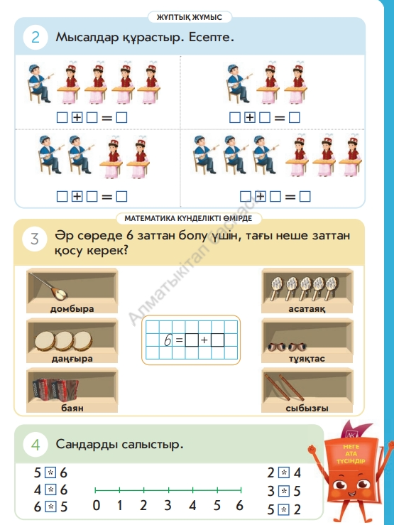 Дескриптор: Сұрақ құрады, жауап береді, сандарды салыстырады-жарайсың!