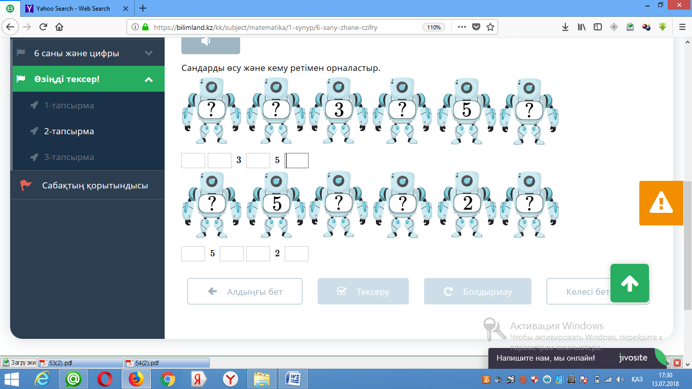 тапсырма «Кім жылдам?» 6 санының