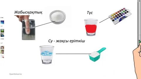 2.1.2.7 – эксперимент жүргізу және оның нәтижелерін кестеге түсіру; 2.3.3.1.-судың физикалық қасиеттерін анықтау (дәмсіз, иіссіз, белгілі бір форманың болмауы, аққыштығы) |