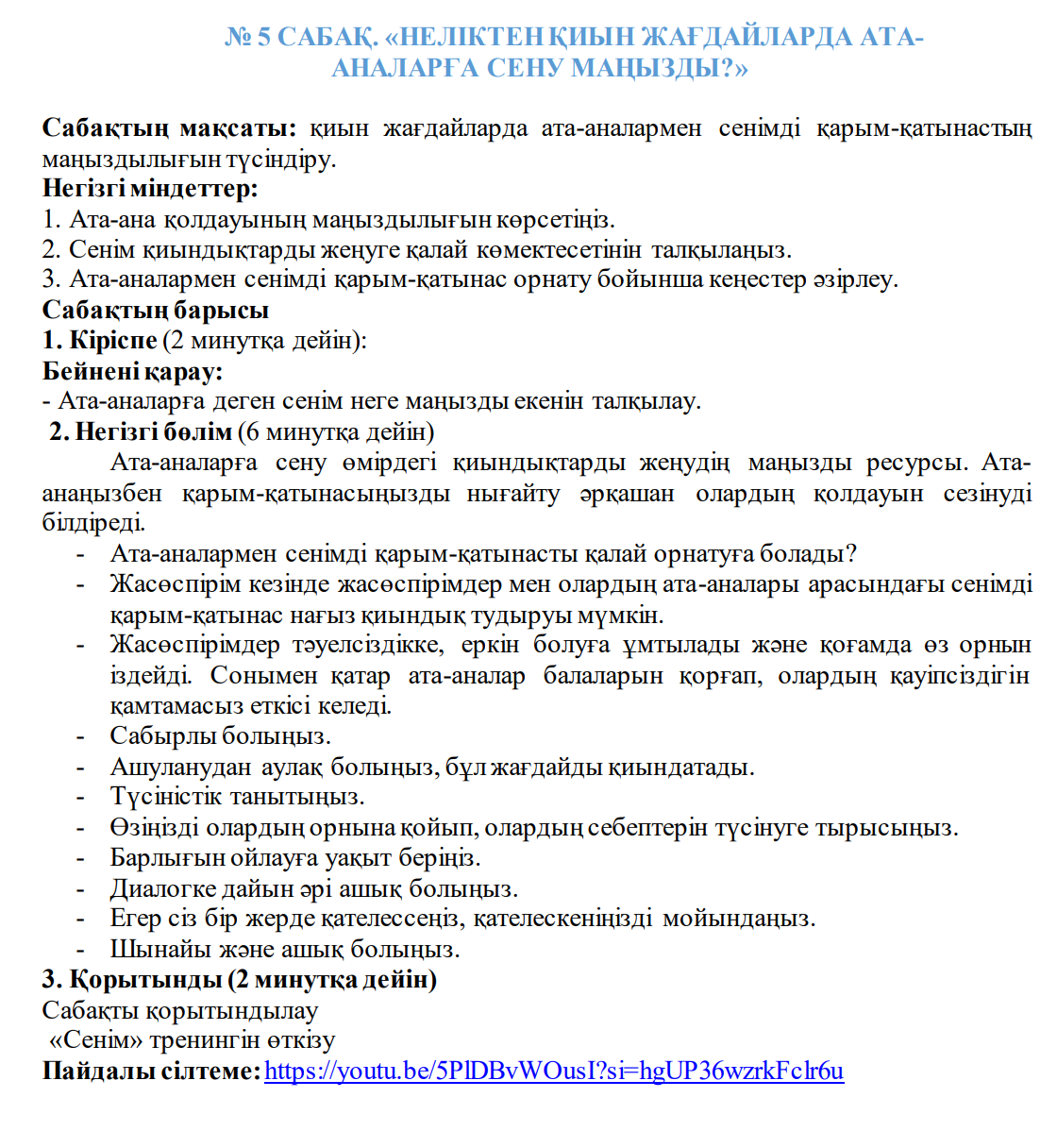 7- сыныптар: «Жағдайларда ата- аналарға сену неге маңызды?»