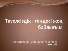 №15 «Тәуелсіздік – теңдесі жоқ байлығым»