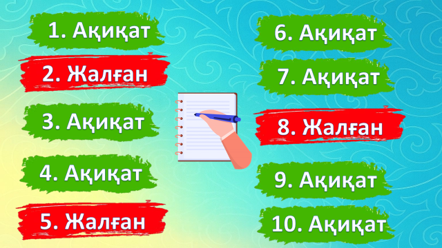 «Ақиқат» немесе «Жалған» деген белгі қояды (қол көтеру, карточка,