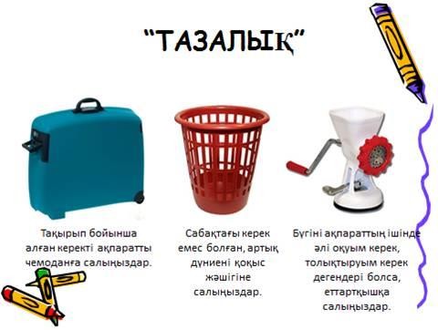 -дербестік, мақсаттылық, ұқыптылық, еңбексүйгіштік сияқты тұлғалық қасиеттерді қалыптастыру.