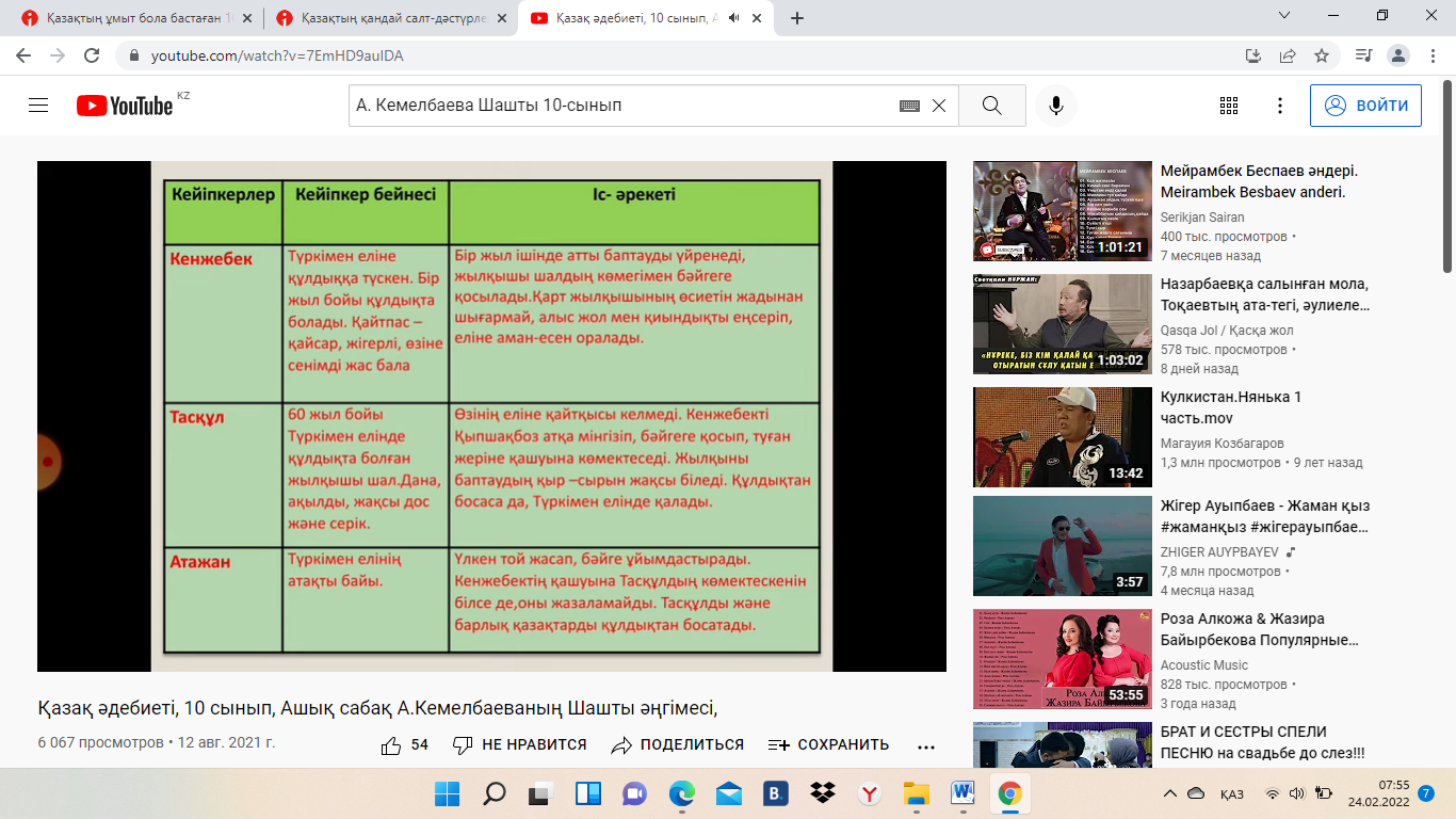 2-тапсырма. А.Кемелбаеваның «Шашты» әңгімесінің кейіпкерлерінің ерекшеліктері бойынша «Концептуалдық кесте» толтырыңыз.