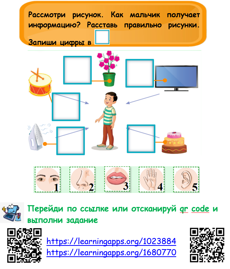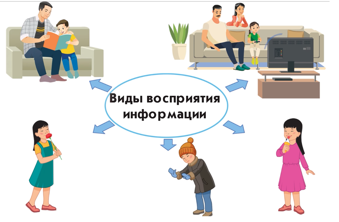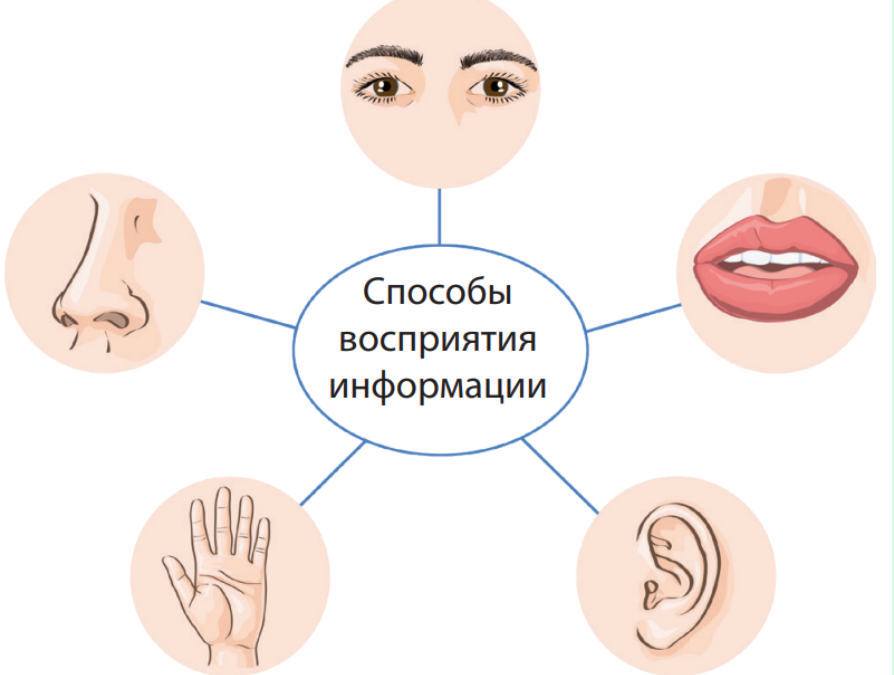 Информацию можно послушать, потрогать, посмотреть, попробовать, понюхать и определить свойства предмета. Это способы восприятия информации