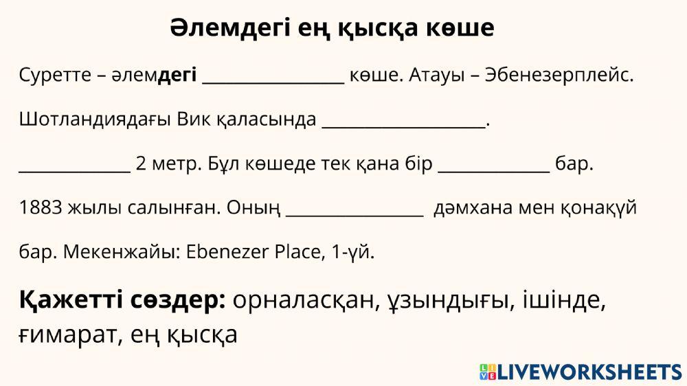 Тапсырма №1 Қажетті сөздерді қолданып мәтінді толықтыру.
