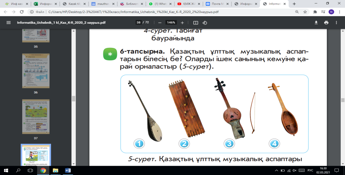Практикалық жұмыстар. (Ж) Оқулықта берілген дайын практикалық жұмысты талқылап, соның негізінде төмендегі тапсырманы орындайды. |