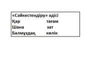 Дескриптор: Суретке сәйкес сөздерді табады Сөздерді өз орнына дұрыс қойып жазады Тамаша жұмыс!