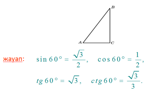 синусы, косинусы, тангенсі және котангенсінің тікбұрышты үшбұрыштың