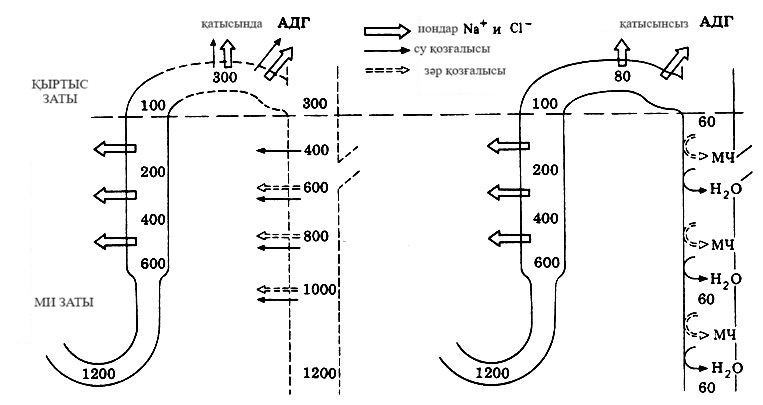 АДГ гормонының әрекетін көрсететін сұлба