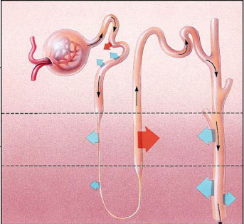Судың көп қабылдағаннан кейін, керісінше, қанның осматикалық қысымы төмендейді және АДГ секрециясы тоқтайды. Дистальды иірім канал және жинағыш түтікше су үшін өткізбейтін болып қалады, судың ми затының фильтрінен өткендегі реабсорбциясы төмендейді, соның салдарынан өп көлемде гипотоникалық зәрдің мөлшері бөлінеді.