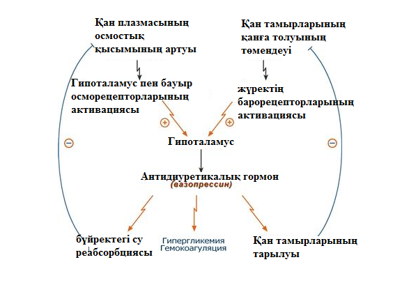 Сусыздану немесе қан құйылу кезіндегі қан қысымының төмендеуіне жүрек пен қантамырлардағы рецептор жасушалары сезу арқылы жауап қайтарғаннан АДГ бөлінеді;