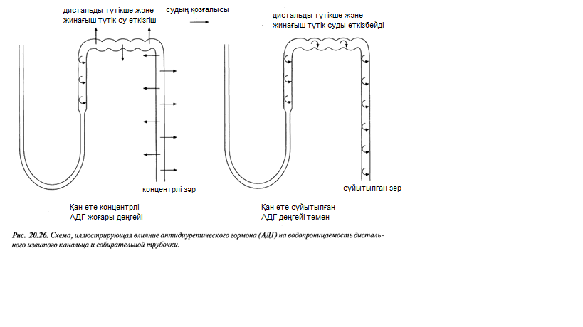 Дистальды канал мен жинағыш түтік жасушалары мембранасының өткізгіштігі АДГ арқылы реттеледі.