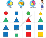 Жазық фигураларды таниды және қоршаған ортадағы заттармен сәйкестендіреді |