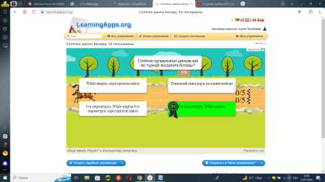 Сабақты қорытындылау https://learningapps.org/display?v=p9mrtzw6523 платформасы арқылы тапсырманы орындайды.