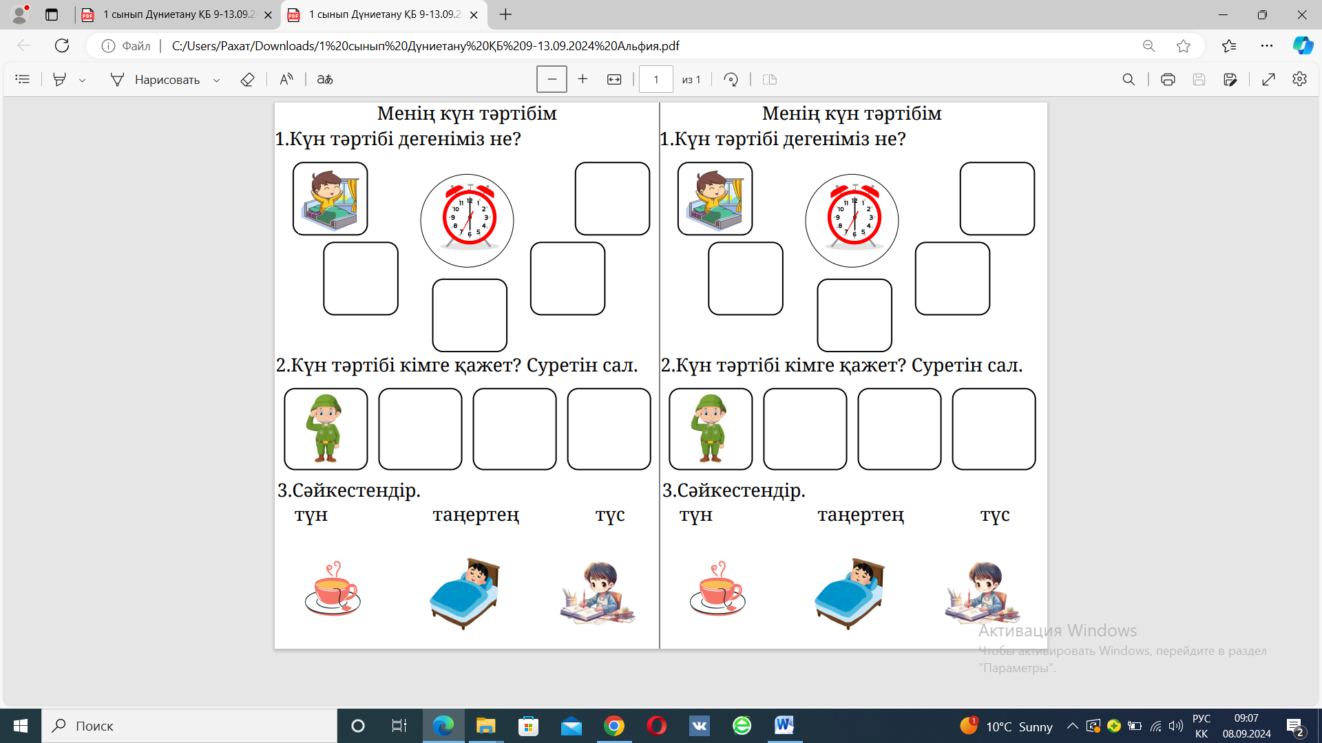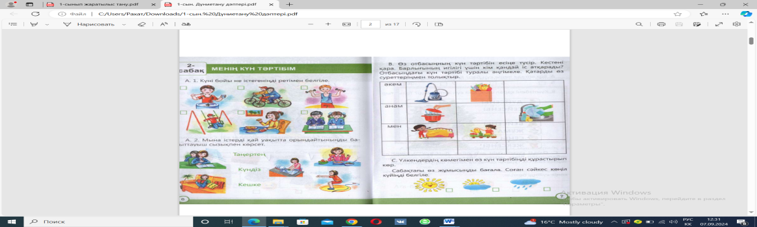Дүниетануоқулығы 1-сынып 2021ж, дәптер 12-бет 13-бет