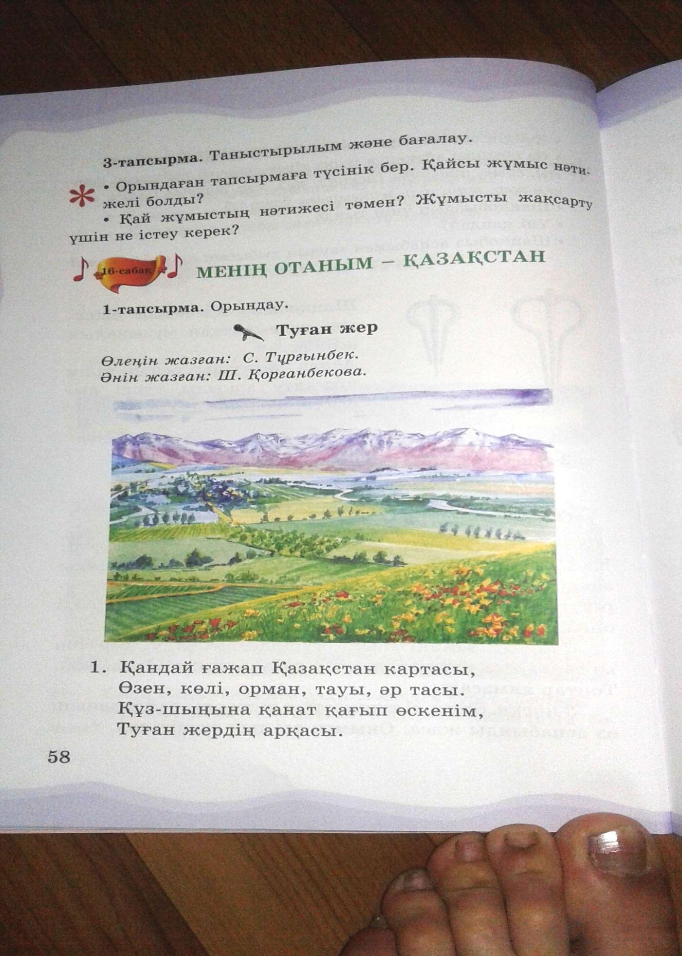 Білу және түсіну Оқушылар оқулықтағы негізгі тақырыппен танысады. 1-тапсырма. Суретке қарап жайлау туралы қысқаша әңгіме құрастыр. Мына тірек сөздерді пайдалан: желдің үні, шөптің сыбдыры, бұлақ сылдыры және төрт түліктің дауысы. «Жариялау» әдісі (Әрбір топ берілген сұрақ бойынша өз позициясын жариялау керек. Бұл үшін топ ішінен спикер берілген уақыт ішінде (5 мину) басқа қатысушылар алдында сөйлеп, топ ұстанымын жеткізеді.)
