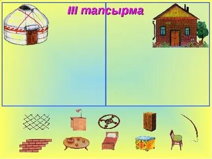 ойыны Үй жұмысын тексеру Сабақтың тақырыбын, мазмұнын суреттер арқылы болжайды. |