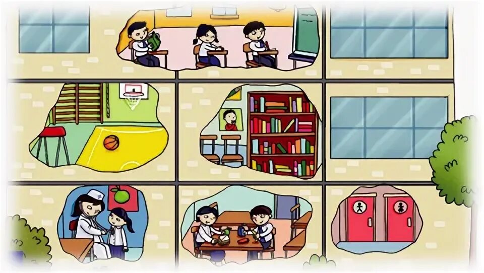 Сергіту сәтін орындайды. Мектебің мынау класың, Осында 10 жыл тұрасың. Тарыдай боп кіресің, Таудай болып шығасың.. Оқиық Мектептегі маған ұнайтын орын – ойын алаңы. Біз оған сабақтан соң барамыз. Алаңда балалар көп. Біз демаламыз, жаттығамыз, ойнаймыз. Үлгі: -Саған мектепте не ұнайды? -Маған ойын алаңы ұнайды. Жазылым Спортзал, би залы деген сөздермен сөйлемдер құрап жаз. Үлгі:Спротзалда доп ойнаймыз. Айтылым Берілген сурет бойынша әңгімелесіңдер.