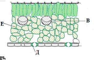 а) Төмендегі суретте В,Е,Д әріптерімен берілген жапырақтың ішкі құрылысының атын жазыңыз.