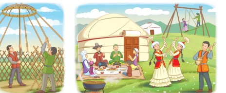 Учащиеся по картинкам говорят о традициях казахского народа.