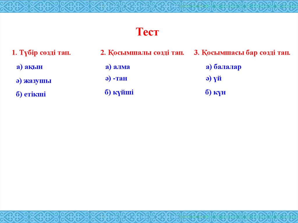 2сынып. Казак т.№72 сабақ. Түбір мен қосымша. 32-35-жаттығулар