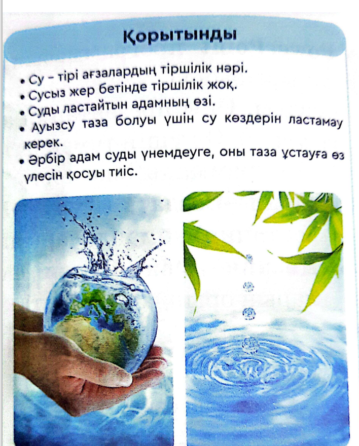 «Су-біздің байлығымыз» тақырыбындағы жоба презентациясын дайындап, топтық талдау жүргізеді.