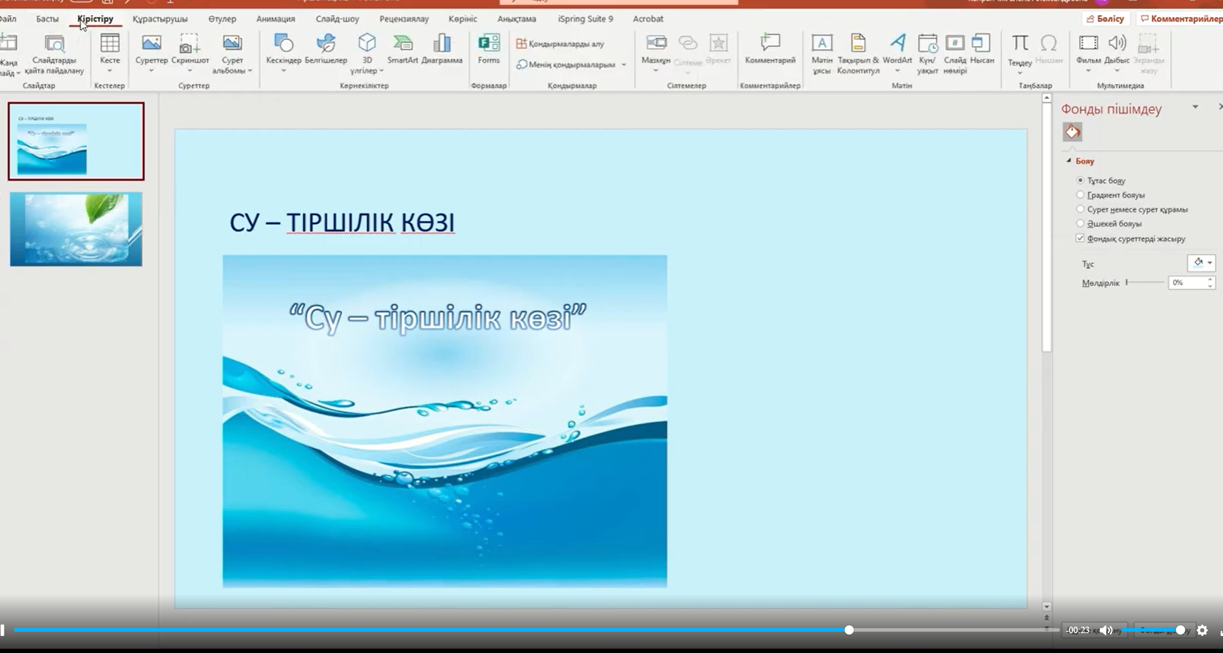 Ұзақмерзімді жоспар тарауы: 4-бөлім. «Презентациялар» (ортақ тақырыбы: «Су-өмірдің қайнар көзі») |