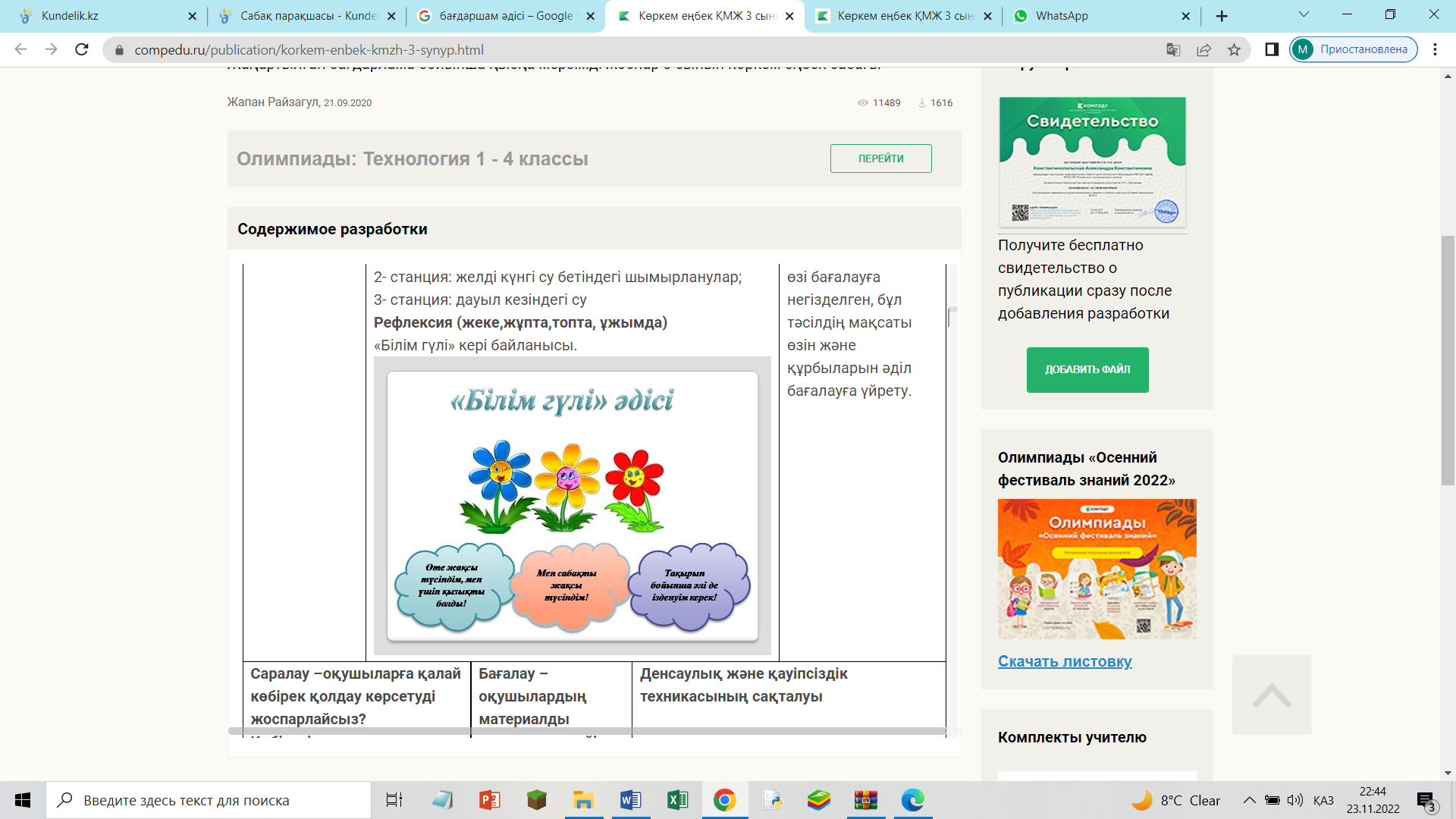 Сұрақтарға жауап береді Оқушылар сабақты қалай меңгергенін стикерлерге жазып білім гүліне жапсырады Үйге тапсырма алады |