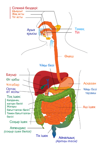 Жауап: 1. Ауыз қуысында: Тағам тістеліп, шайналған соң сілекеймен араласады. Сілекейде бар амилоза ферменті көмірсуларды қорытуға көмектеседі. Бұл процесс 2-3 минутта өтеді. 2. Асқазан: Тағам асқазанға түскен соң асқазан сөлімен араласып, онда протеаза ферменті ақуыздарды ыдырата бастайды. Бұл процесс 2-3 сағатты алады. 3. Жіңішке ішек: Тағам асқазаннан ішекке өткен соң, онда майлар мен ақуыздар ферменттердің көмегімен қорытылады. Қанттар мен аминқышқылдар сіңіріле бастайды, бұл процесс 3-4 сағатты алады. 4. Қан мен лимфа: Қоректік заттар қанға және лимфаға өтеді, ағзаға таралып, ұлпаларға жетеді. Бұл процесс 1-2 сағатты алады. 5. Тоқ ішек: Қалдықтар тоқ ішекке өтіп, онда су мен тұздар сіңіріледі, нәтижесінде қалдықтар шығарылып, 12-24 сағат ішінде ағзадан шығарылады. |